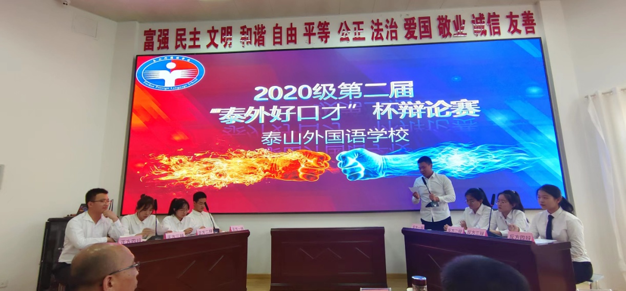 “萬言一吐成宏章,博彩驚言造偉論,是非只在唇齒間,一辯到底論雌雄”。為了唱響五四青春的主旋律,讓學(xué)生們在活動中體會青春的激情與熱烈,在活動中鍛煉敏捷的思辨能力與較強(qiáng)的語言表達(dá)能力,泰山外國語學(xué)校2020級成功舉辦了第二屆“泰外好口才杯”辯論賽的活動。