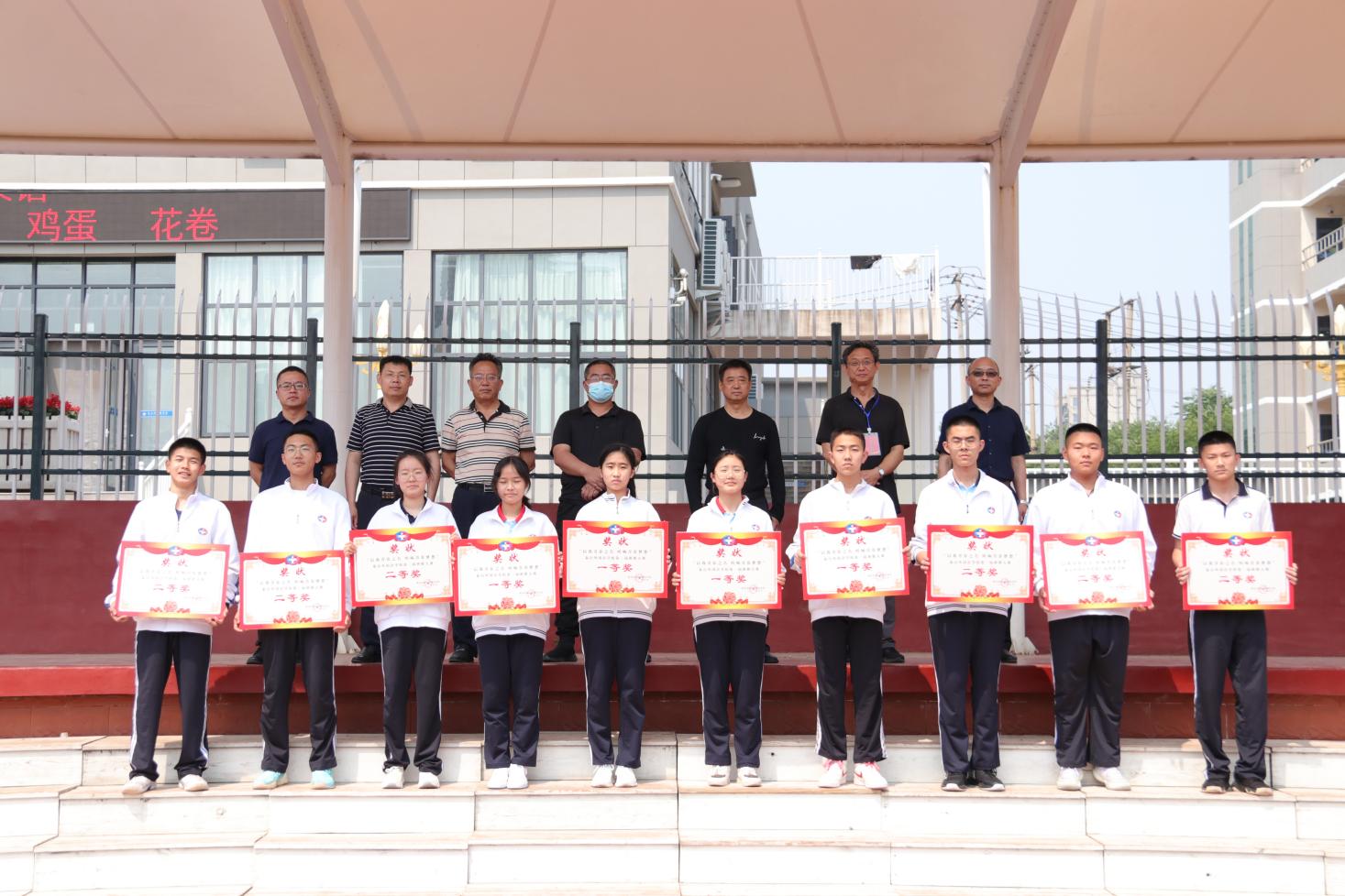 學(xué)校領(lǐng)導(dǎo)為獲得大賽一等獎、二等獎的班級頒發(fā)獎狀。