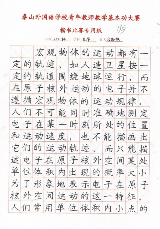 常言道:“書者,心畫也”,人的心性常隨字而出,不僅能體現(xiàn)教師教學(xué)基本功,也能體現(xiàn)教師教學(xué)態(tài)度。在鋼筆字、板書設(shè)計(jì)比賽中參賽教師一筆一畫用心書寫著每一個(gè)漢字,所寫作品筆畫流暢,橫平豎直,結(jié)構(gòu)勻稱,整體美觀。