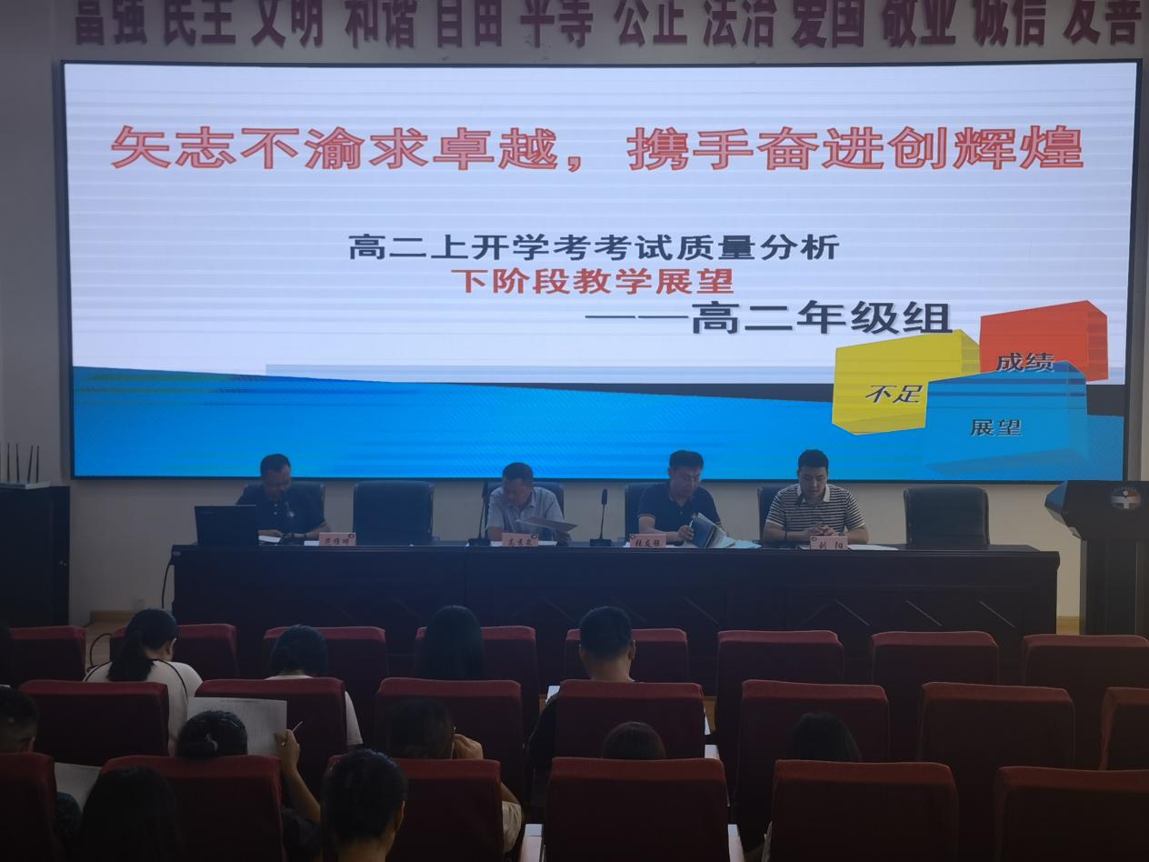 開學(xué)考試工作已經(jīng)結(jié)束,我們即將迎來進(jìn)入高二年級(jí)的第一次月考,為進(jìn)一步總結(jié)經(jīng)驗(yàn),提高課堂教學(xué)效果和教學(xué)質(zhì)量,促進(jìn)各備課組及各位老師對(duì)前半學(xué)期工作進(jìn)行認(rèn)真分析、反思,認(rèn)真總結(jié)教學(xué)工作中的得與失,為下一階段教學(xué)工作的有效推進(jìn)奠定良好的基礎(chǔ)。9月21日下午5點(diǎn),2021級(jí)全體教師在教學(xué)樓一樓會(huì)議室召開“矢志不渝求卓越,攜手奮進(jìn)創(chuàng)輝煌——2021級(jí)高二上學(xué)期開學(xué)考試教學(xué)質(zhì)量分析會(huì)”。