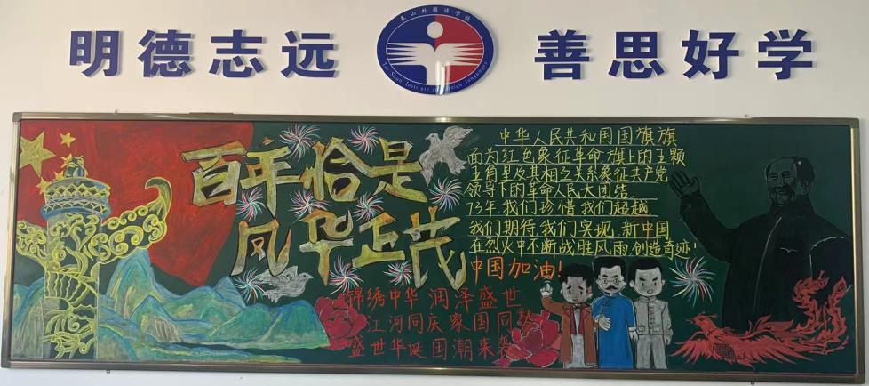 在校領(lǐng)導(dǎo)的高度重視、班主任老師的精心指導(dǎo)下,各班積極參與、認(rèn)真設(shè)計,一幅幅主題思想突出、圖文并茂、創(chuàng)意新穎的黑板報脫穎而出!莊嚴(yán)的天安門城樓,鮮艷的五星紅旗,同學(xué)們把對黨和祖國的熱愛之情,化作靈動的文字和精美的圖案,一一展現(xiàn)在評委老師和同學(xué)面前。