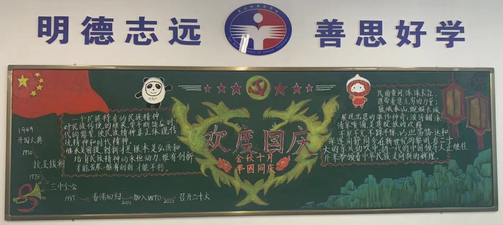 為激發(fā)學(xué)生愛國熱情,加強學(xué)校文化建設(shè),彰顯班級文化魅力,9月29日上午,學(xué)校2022級以班級為單位組織了以“愛祖國、愛家鄉(xiāng)、愛學(xué)校”為主題的黑板報評比活動。