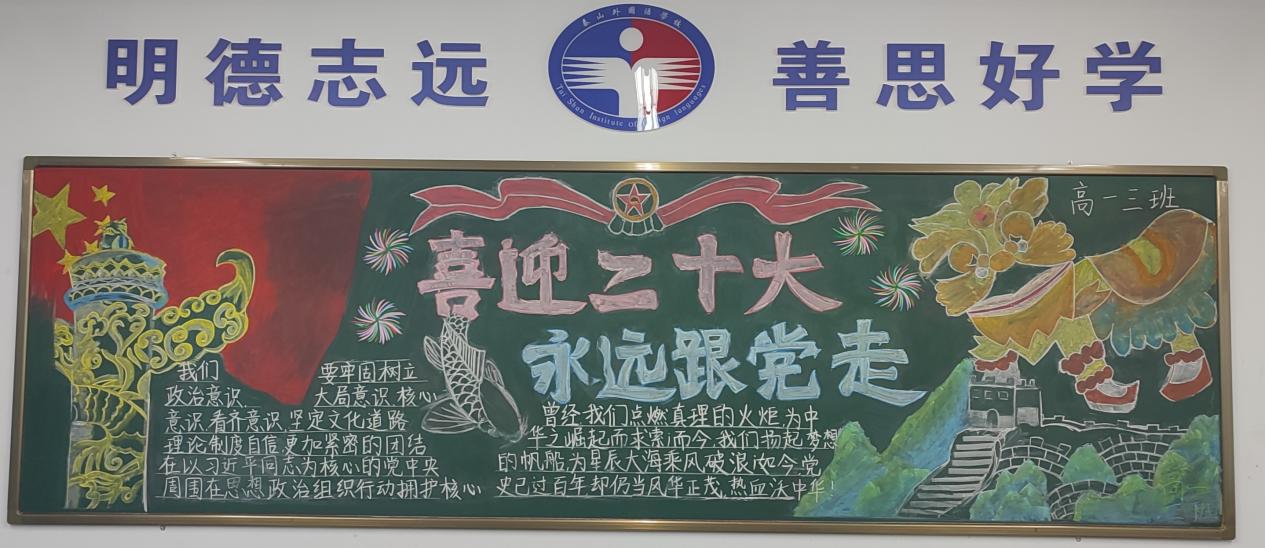 為激勵全體學(xué)生認(rèn)真學(xué)習(xí)領(lǐng)會黨的二十大精神,培養(yǎng)學(xué)生“聽黨話、跟黨走”堅定信念,努力成長為有理想、敢擔(dān)當(dāng)、能吃苦、肯奮斗的新時代好青年,為中華民族偉大復(fù)興貢獻(xiàn)力量,學(xué)校2022級部舉行“學(xué)習(xí)二十大,奮進(jìn)新征程”主題板報評比活動。