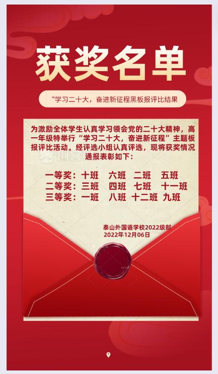各班級創(chuàng)作完成后,級部評選組進(jìn)行打分評比,從板面設(shè)計、板報主題、思想高度等方面進(jìn)行評審,最后評選出一等獎四名、二等獎四名、三等獎四名。