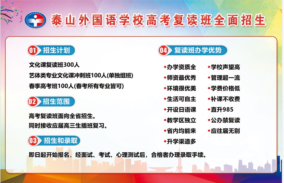 歡迎加入泰山外國語學(xué)校復(fù)讀部,