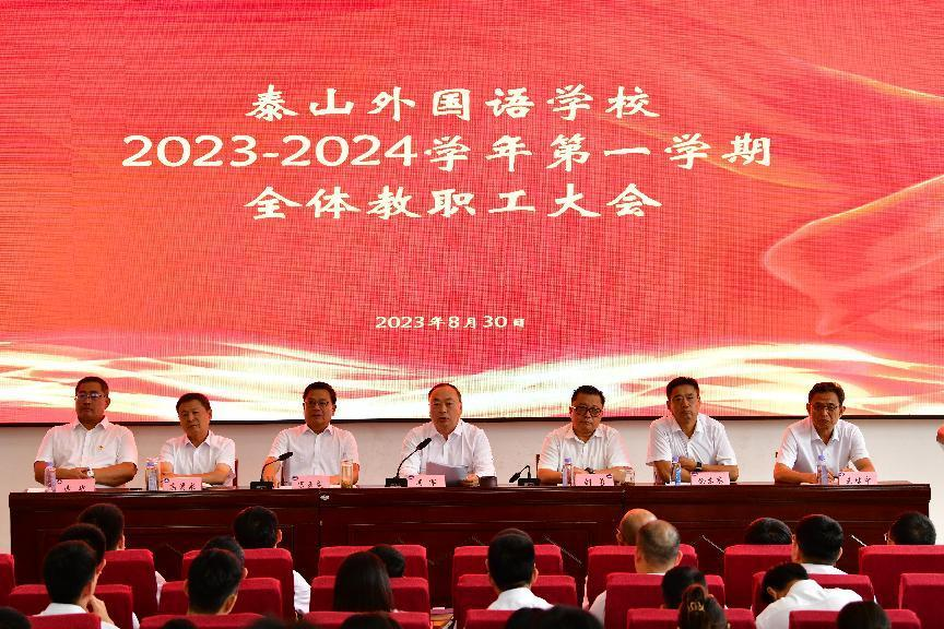 金秋送爽,碩果飄香,洋溢著豐收的喜悅,泰山外國(guó)語(yǔ)學(xué)校全體教職工迎來(lái)了充滿希望的新學(xué)期。為統(tǒng)一思想,凝聚共識(shí),明晰思路,再創(chuàng)輝煌,8月30日下午3:00,學(xué)校在崇遠(yuǎn)樓一樓階梯報(bào)告廳隆重召開(kāi)了2023-2024學(xué)年第一學(xué)期全體教職工大會(huì)。大會(huì)由學(xué)校顧問(wèn)宋玉成主持。