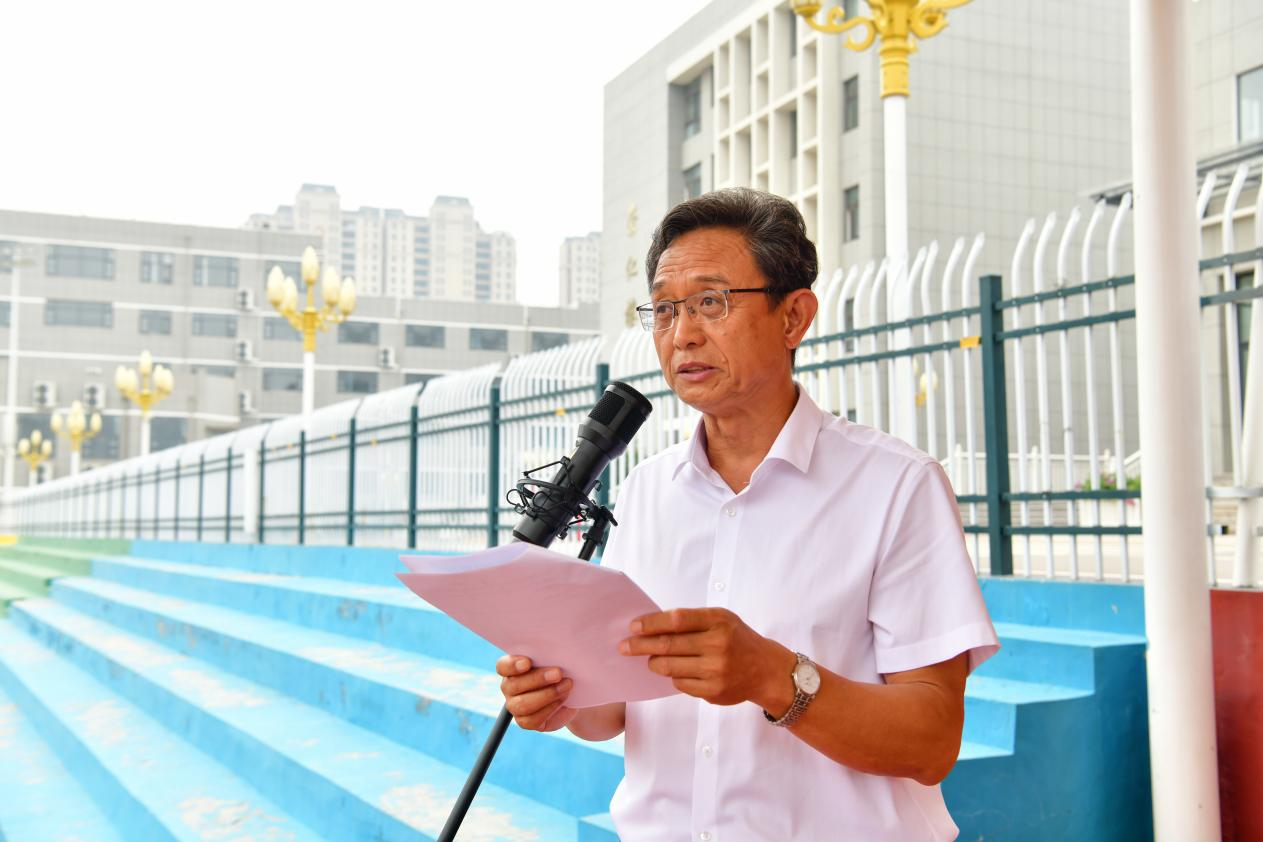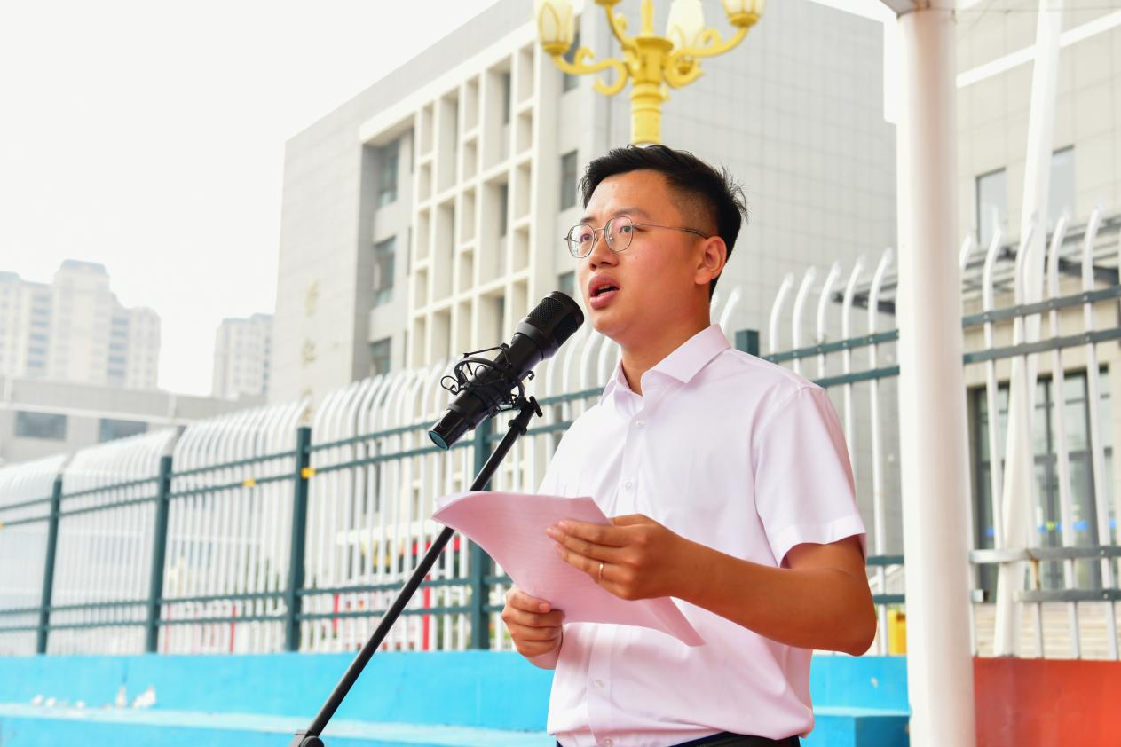 云天收夏色,木葉動(dòng)秋聲。在這個(gè)秋風(fēng)送爽、碩果滿枝的金秋時(shí)節(jié),我們又迎來了新的學(xué)期,開啟了新的奮斗征程。9月11日上午,學(xué)校在田徑運(yùn)動(dòng)場隆重舉行2023-2024學(xué)年第一學(xué)期開學(xué)典禮。出席開學(xué)典禮的學(xué)校領(lǐng)導(dǎo)有:辦學(xué)顧問周軍、黨支部書記劉勇、顧問宋玉成、副校長兼黨政辦公室主任徐東高、副校長兼教務(wù)處主任高秀泉、副校長兼學(xué)工處主任王建中、副校長兼總務(wù)處主任曲斌、高一年級(jí)主任梁軍、高二年級(jí)主任紀(jì)維鎮(zhèn)、高三年級(jí)主任張友強(qiáng)、高四年級(jí)主任夏崇明。