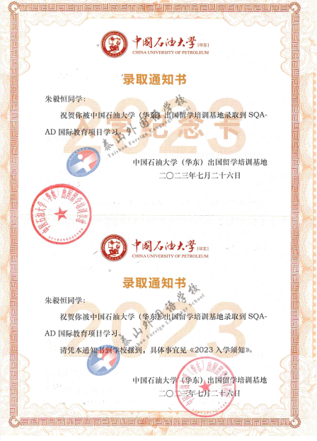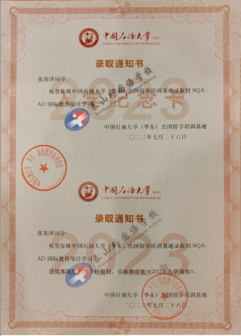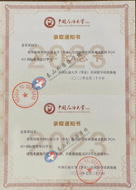 金秋九月,丹桂飄香,在這收獲的季節(jié),熱烈祝賀我校2021級學生姜菁菁、張英澤、朱毅衡、李源宸、劉梓琪、馮志昊6名同學通過中國石油大學(華東)3+1國際本科項目成功被錄取,提前一年進入大學學習。