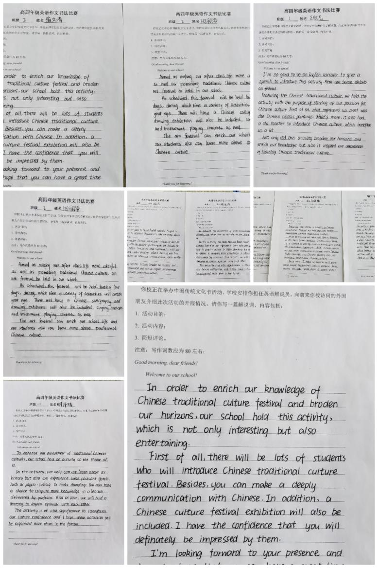 “外語作文書法大賽”拉開了此次競技比賽的序幕。老師首先提出了比賽要求和規(guī)范,比賽開始,同學(xué)們認(rèn)真專注,伏案凝神,自信滿滿。