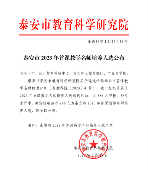 在前期公布的“泰安市首課精品課例”活動(dòng)中,我校范維明老師的課例被評(píng)為泰安市首批首課精品課例。