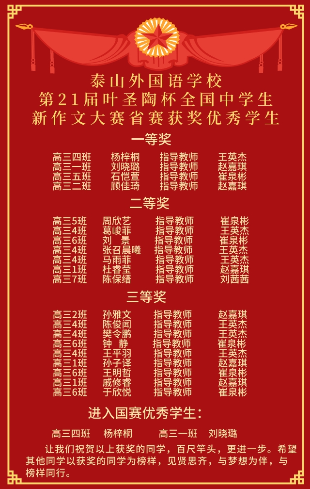 第21屆葉圣陶杯全國中學(xué)生新作文大賽獲獎優(yōu)秀學(xué)生