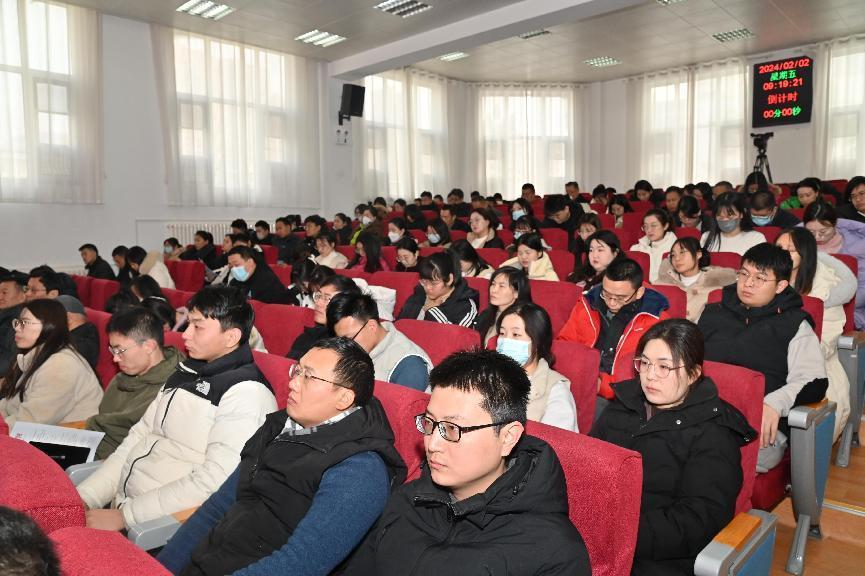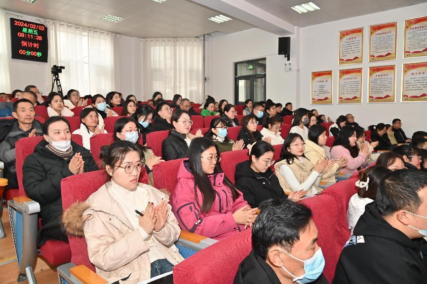 兔躍九州辭舊歲,龍騰四海迎新年。為全面回顧總結(jié)本學(xué)期教育教學(xué)工作,為下學(xué)期工作的順利開(kāi)展做好精心的準(zhǔn)備,2月2日上午9:00,學(xué)校在崇遠(yuǎn)樓一樓報(bào)告廳隆重召開(kāi)2023-2024學(xué)年第一學(xué)期全體教職工大會(huì)。參加會(huì)議的學(xué)校領(lǐng)導(dǎo):辦學(xué)顧問(wèn)周軍、宋玉成、副校長(zhǎng)兼黨政辦公室主任徐東高、副校長(zhǎng)兼教務(wù)處主任高秀泉、副校長(zhǎng)兼學(xué)工處主任王建中、副校長(zhǎng)兼總務(wù)處主任曲斌,大家齊聚一堂,回首過(guò)去,展望未來(lái)。