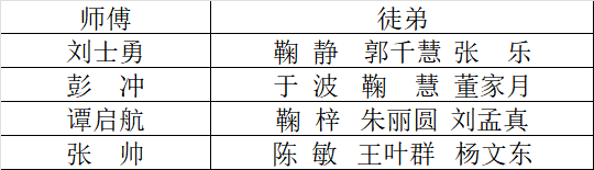 “青藍工程”是一種情感紐帶,也是一種文化傳承。經(jīng)學(xué)校和年級研究決定,本學(xué)期有4組師徒成功結(jié)對,分別是: