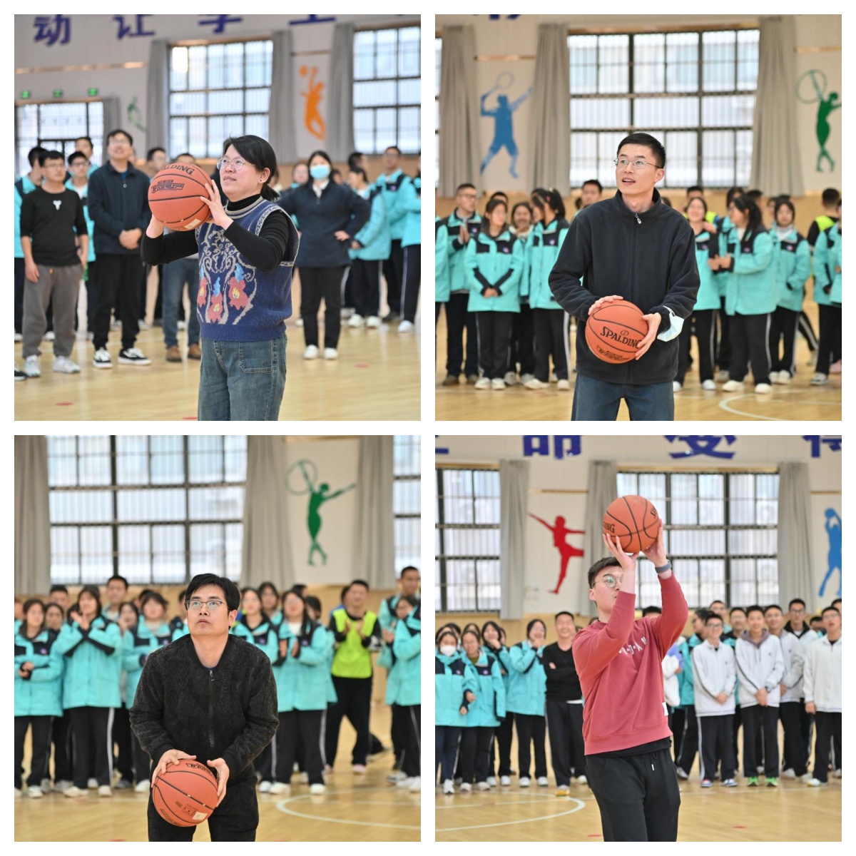 2022級部領(lǐng)導(dǎo)、各班班主任、裁判團(tuán)隊(duì)、籃球運(yùn)動(dòng)員們、年級學(xué)子齊聚體育館參加本次開賽儀式。開賽儀式上,年級領(lǐng)導(dǎo)和班主任展示定點(diǎn)投籃,為同學(xué)們加油助威。