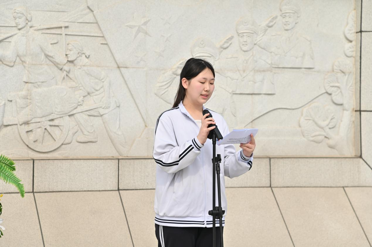 學(xué)生代表在獻(xiàn)詞中表達(dá)了對(duì)革命先烈的敬意,她表示作為青年學(xué)生,一定要積極進(jìn)取、奮發(fā)圖強(qiáng)。