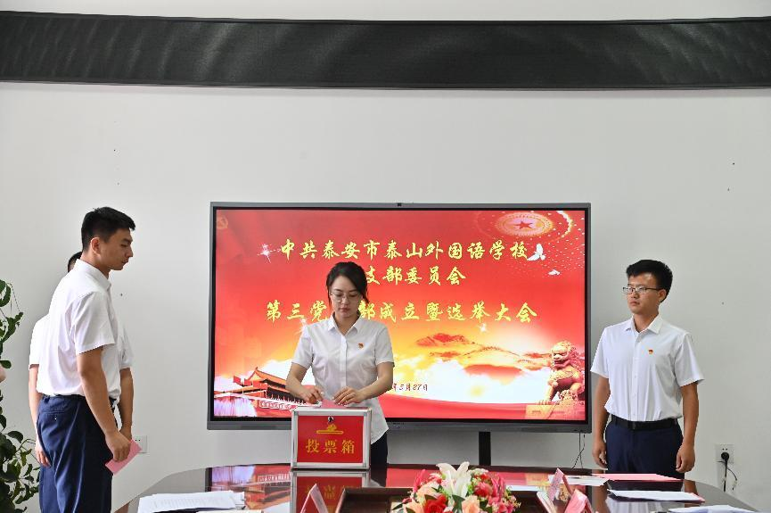 根據(jù)《黨章》、《中國(guó)共產(chǎn)黨基層組織選舉工作條例》有關(guān)規(guī)定,每名黨員通過(guò)無(wú)記名投票方式,差額選舉產(chǎn)生了中共泰安市泰山外國(guó)語(yǔ)學(xué)?傊Р课瘑T會(huì)第三黨支部新一屆黨支部委員會(huì)委員5人。