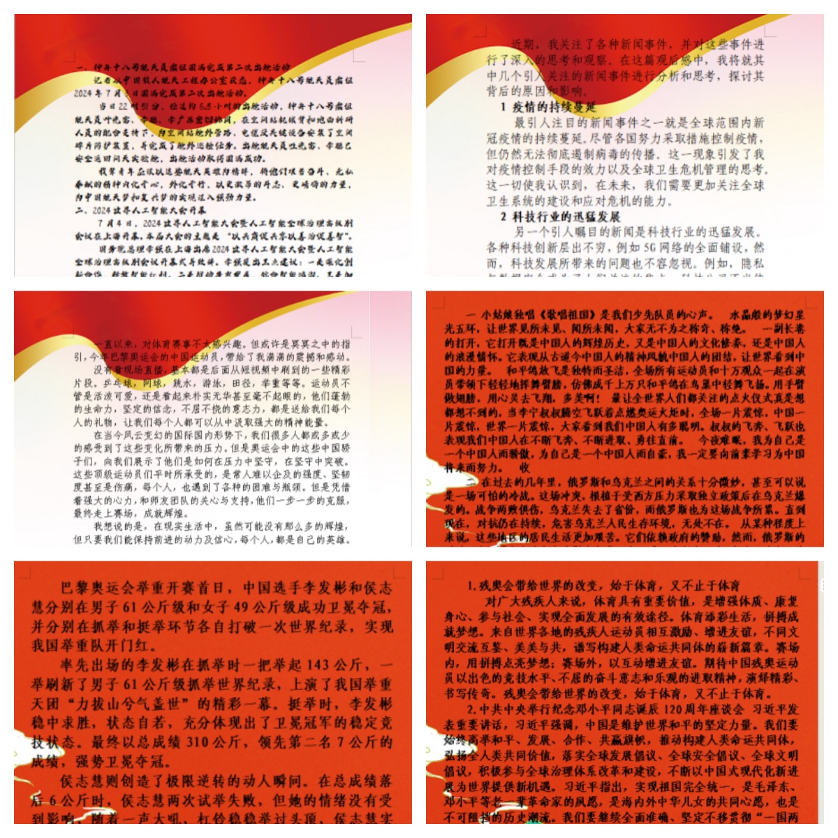 愛(ài)國(guó)是一個(gè)深刻而廣泛的主題,它不僅僅是一種情感,更是一種責(zé)任和義務(wù)。愛(ài)國(guó)的方式有多種。學(xué)校要求學(xué)生觀看新聞聯(lián)播,積累三件國(guó)家大事,對(duì)于每件國(guó)家大事寫不少于300字的評(píng)價(jià),通過(guò)學(xué)習(xí),感悟,實(shí)踐來(lái)感受祖國(guó)的強(qiáng)大,由此抒發(fā)自己的愛(ài)國(guó)情懷。以下是優(yōu)秀的作品。