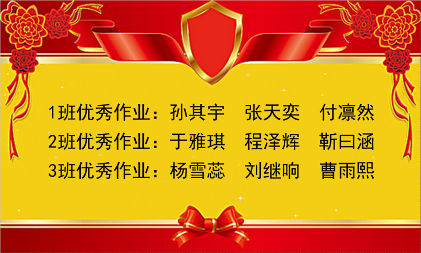 經(jīng)過(guò)級(jí)部評(píng)選,優(yōu)秀作業(yè)學(xué)生名單如下: