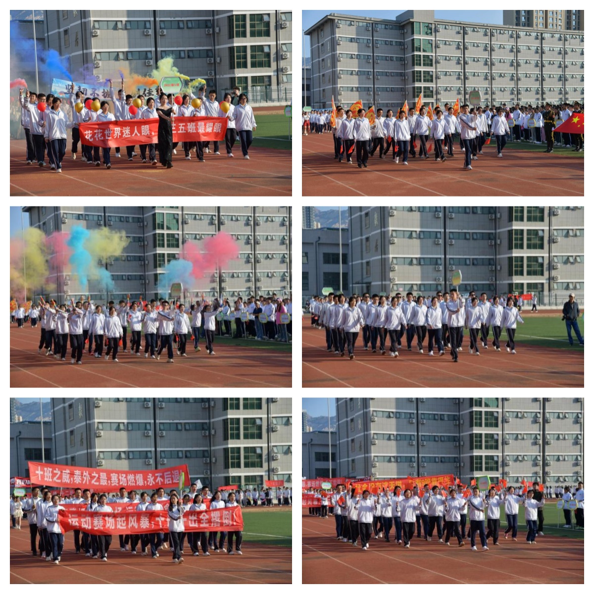 開幕式在激昂奮進的國歌中拉開序幕。國旗隊、鮮花隊、彩旗隊以及各班代表隊踏著整齊的步伐,喊著響亮的口號步入會場,依次從主席臺前經(jīng)過。“生如夏花向朝陽,不負韶華斬鋒芒”是他們的生動寫照;“長風破浪會有時,直掛云帆濟滄海”是他們拼搏的底色。