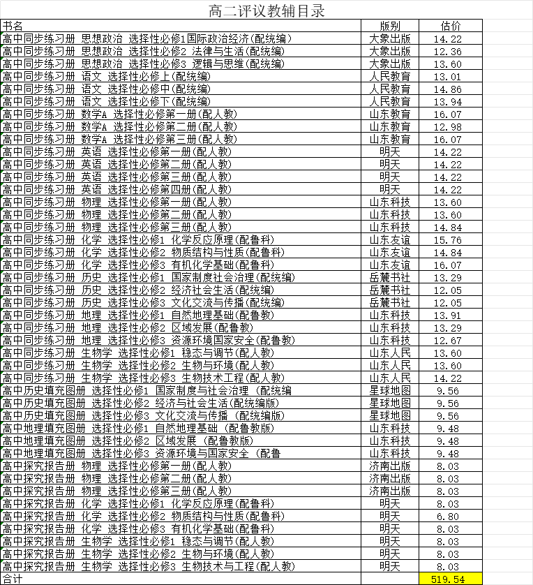 高二評(píng)議教輔目錄