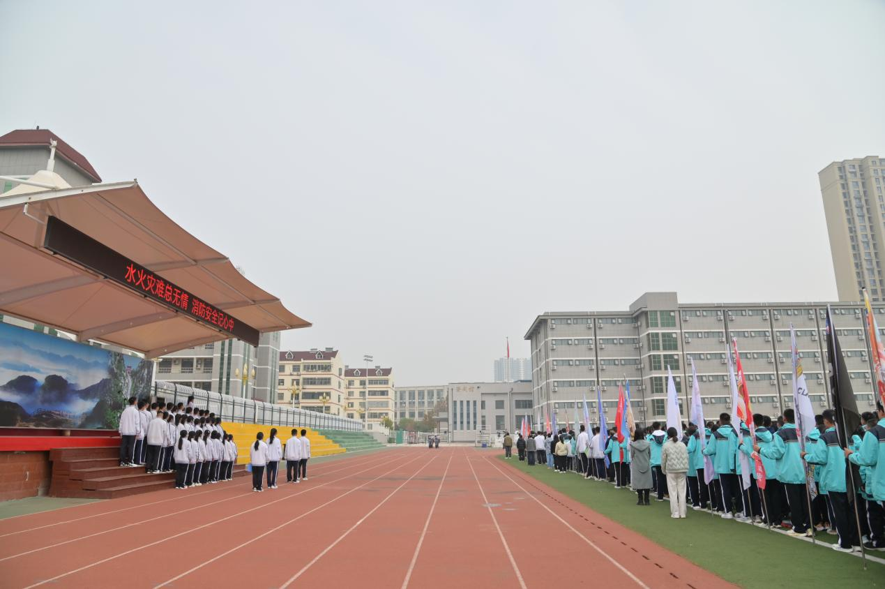 學(xué)校舉行消防安全教育日主題升旗儀式