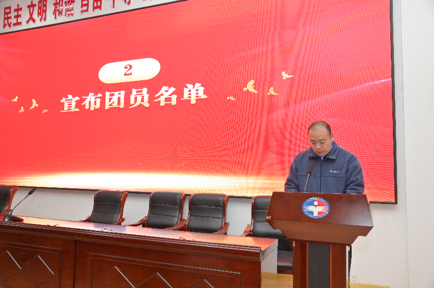 2023級(jí)部主任助理彭沖宣讀了新團(tuán)員名單。