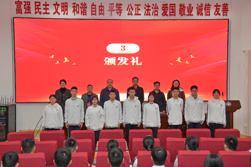 為弘揚(yáng)以愛(ài)國(guó)主義為核心的中華民族精神,團(tuán)結(jié)帶領(lǐng)廣大團(tuán)員青年永遠(yuǎn)跟黨走、奮進(jìn)新征程,進(jìn)一步增強(qiáng)團(tuán)員的榮譽(yù)感和使命感,11月19日,學(xué)校團(tuán)委在崇遠(yuǎn)樓一樓報(bào)告廳隆重舉行主題為“青春心向黨,筑夢(mèng)向未來(lái)”的新團(tuán)員入團(tuán)儀式,學(xué)校副校長(zhǎng)、學(xué)工處主任、團(tuán)委書(shū)記王建中,2023級(jí)部主任助理彭沖,2022級(jí)3班班主任王家玉,學(xué)工處主任助理薛坤,學(xué)工處馮哲、李浩妍老師及團(tuán)員青年50余人出席活動(dòng)。