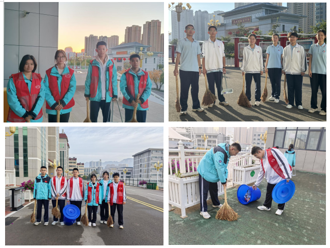 活動中,志愿者們手持掃把、撮箕,一絲不茍地清掃著地面,不放過一粒塵土。