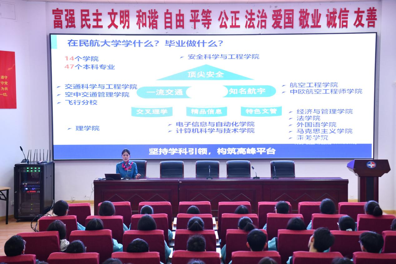 張銘珠從學(xué)校歷史、學(xué)校優(yōu)勢、招生政策、校園生活等幾個方面向同學(xué)們介紹了中國民航大學(xué),讓同學(xué)們?nèi)媪私庵袊窈酱髮W(xué)并分享了她的大學(xué)生活經(jīng)歷,包括學(xué)習(xí)的課程,參加的校園和社會活動,課余時間的提升安排等,鼓勵同學(xué)們明確目標(biāo),堅定信念,在學(xué)習(xí)的道路上勇往直前,他在大學(xué)等著學(xué)弟學(xué)妹們的到來。