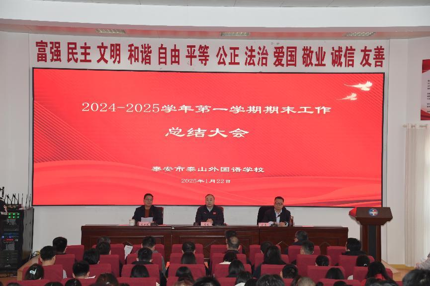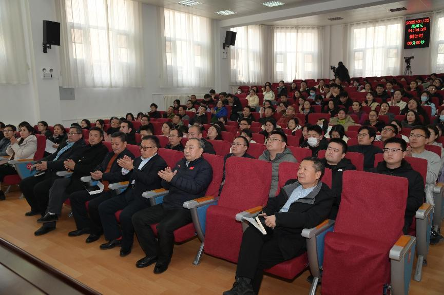 飛龍騰空辭舊歲,金蛇舞動(dòng)啟新程。為全面回顧總結(jié)本學(xué)期教育教學(xué)工作,為下學(xué)期工作的順利開展做好精心的準(zhǔn)備,1月22日下午2:30,學(xué)校在崇遠(yuǎn)樓一樓報(bào)告廳隆重召開2024-2025學(xué)年第一學(xué)期期末全體教職工大會(huì)。參加會(huì)議的學(xué)校領(lǐng)導(dǎo)同志有:周軍、劉勇、宋玉成、徐東高、高秀泉、曲斌,大家齊聚一堂,回首過(guò)去,展望未來(lái)。