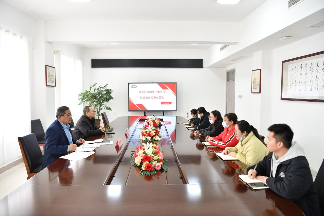2月28日,泰山外國(guó)語(yǔ)學(xué)校召開校領(lǐng)導(dǎo)現(xiàn)場(chǎng)辦公會(huì)及校園膳食經(jīng)費(fèi)專題會(huì)。學(xué)校領(lǐng)導(dǎo)同志周軍、曲斌,總務(wù)處全體成員、食堂全體員工參加會(huì)議。