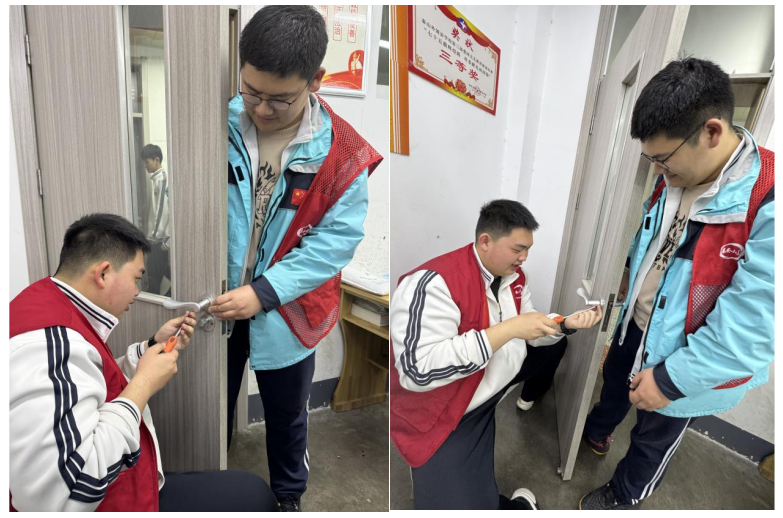 2023級部維修志愿小組的行動為校園帶來了一份特別的溫暖。同學們利用自己的課余時間,對辦公室和教室的門把手進行了維修和更換。他們的細心和耐心,不僅解決了實際問題,也傳遞了一份對校園的關(guān)愛和責任。