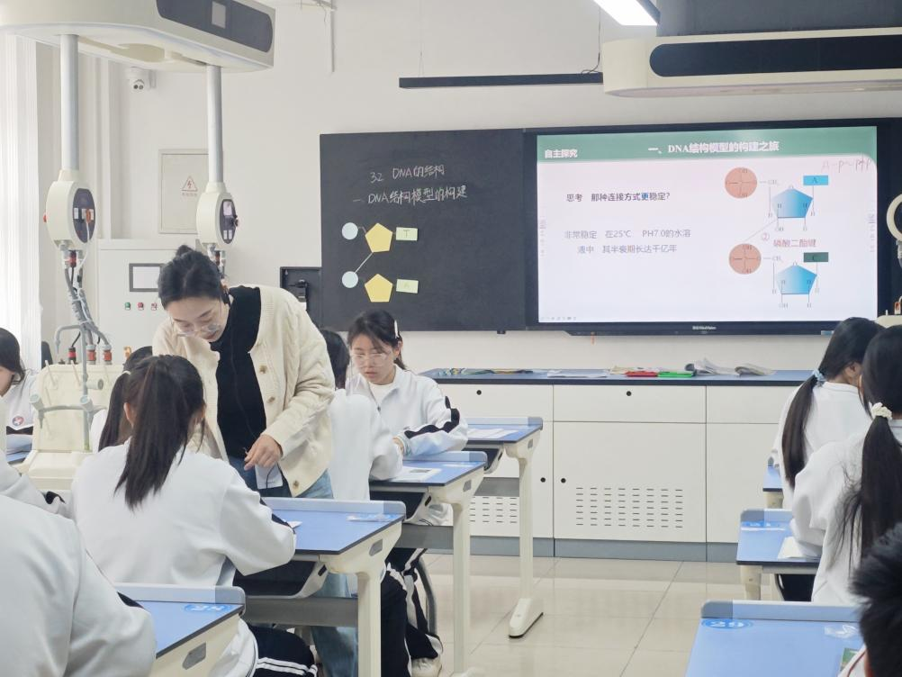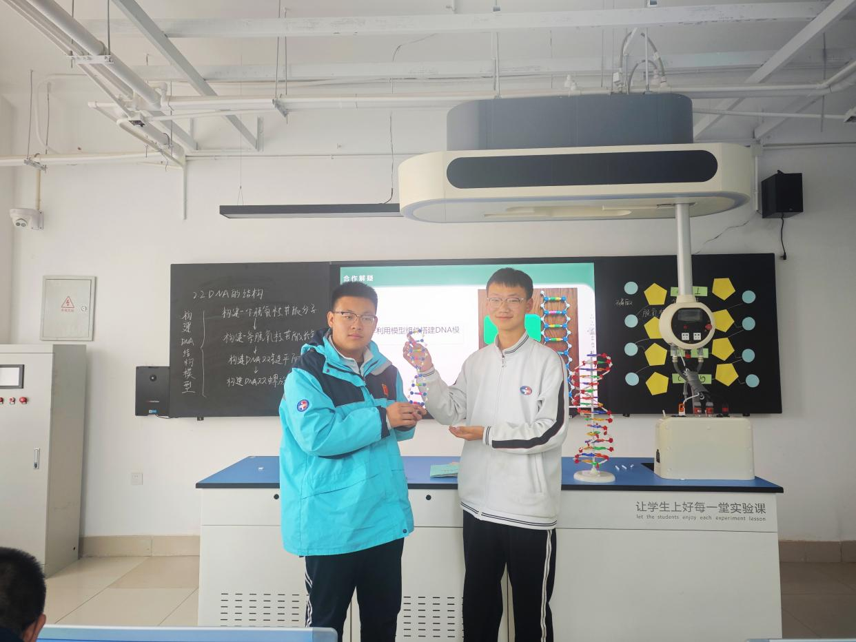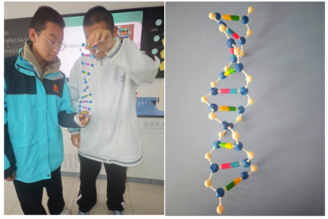 此次實(shí)驗(yàn)課,同學(xué)們通過(guò)親自動(dòng)手構(gòu)建DNA結(jié)構(gòu)模型,將書(shū)本上的知識(shí)轉(zhuǎn)化為直觀(guān)的實(shí)物,不僅加深了對(duì)DNA分子結(jié)構(gòu)的理解,還鍛煉了團(tuán)隊(duì)協(xié)作能力、創(chuàng)新思維和動(dòng)手實(shí)踐能力。在這場(chǎng)與生命密碼的對(duì)話(huà)中,一顆顆熱愛(ài)科學(xué)的求知種子正在青春的土壤里悄然萌芽。未來(lái),我校將繼續(xù)開(kāi)展更多類(lèi)似的實(shí)踐活動(dòng),培養(yǎng)學(xué)生的科學(xué)素養(yǎng),讓學(xué)生在實(shí)踐中感受生命科學(xué)的魅力。