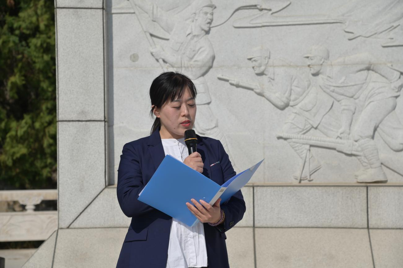 下午2:30,黨員代表在學(xué)校南門統(tǒng)一乘車前往烈士陵園。抵達(dá)陵園后,全體人員在主持人學(xué)工處副主任段競(jìng)男引導(dǎo)下肅立整隊(duì),校黨總支委員第三黨支部書記王建中同志現(xiàn)場(chǎng)開展紀(jì)律教育,強(qiáng)調(diào)活動(dòng)承載的歷史意義。