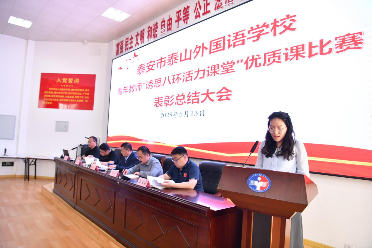 為進(jìn)一步深化課堂教學(xué)改革,激發(fā)青年教師創(chuàng)新活力,5月13日,泰山外國語學(xué)校舉行青年教師“誘思八環(huán)活力課堂”優(yōu)質(zhì)課比賽總結(jié)表彰會(huì)。優(yōu)質(zhì)課比賽以“以賽促教、團(tuán)隊(duì)共進(jìn)”為宗旨,25位參賽教師同臺(tái)競技,呈現(xiàn)了一場(chǎng)場(chǎng)精彩紛呈的教學(xué)盛宴。本次會(huì)議通過表彰先進(jìn)、分享經(jīng)驗(yàn)、總結(jié)成果,充分展現(xiàn)了優(yōu)質(zhì)課比賽對(duì)教師專業(yè)成長和教學(xué)質(zhì)量提升的重要意義。