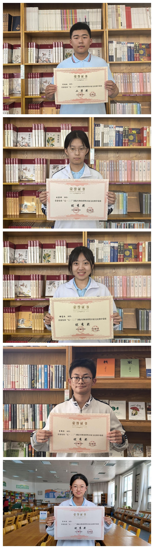 在泰安市教育局主辦的“五二二國際生物多樣性日”征文大賽中,我校選送作品從全市3000余篇稿件中脫穎而出,李福林同學作品《岱宗護生靈,世界佑萬生》榮獲市級二等獎,宋嘉諾等5名同學獲優(yōu)秀獎(名單附后),獲獎總數(shù)居全市前列!這份榮譽彰顯了我校生態(tài)教育的扎實成效,更是學子們以文字踐行生態(tài)責任的生動注腳。