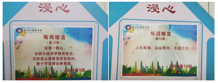 每周格言以醒目的A3海報形式呈現(xiàn),搭配學(xué)生手繪的創(chuàng)意插畫,成為走廊文化的一抹亮色。學(xué)生每日進出教室時駐足品讀,潛移默化中內(nèi)化價值觀。
