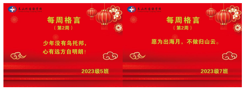 “每周格言”作為泰安市泰山外國語學(xué)校2023級部“致遠”德育品牌矩陣的第二篇章,以“微言大義”實現(xiàn)“潤心無聲”,以文字的溫度,照亮成長的年輪從歷史長河的激蕩回歸現(xiàn)實生活的微光。從“歷史上的今天”到“每周格言”,我們始終相信:教育不是灌輸,而是點燃火焰!