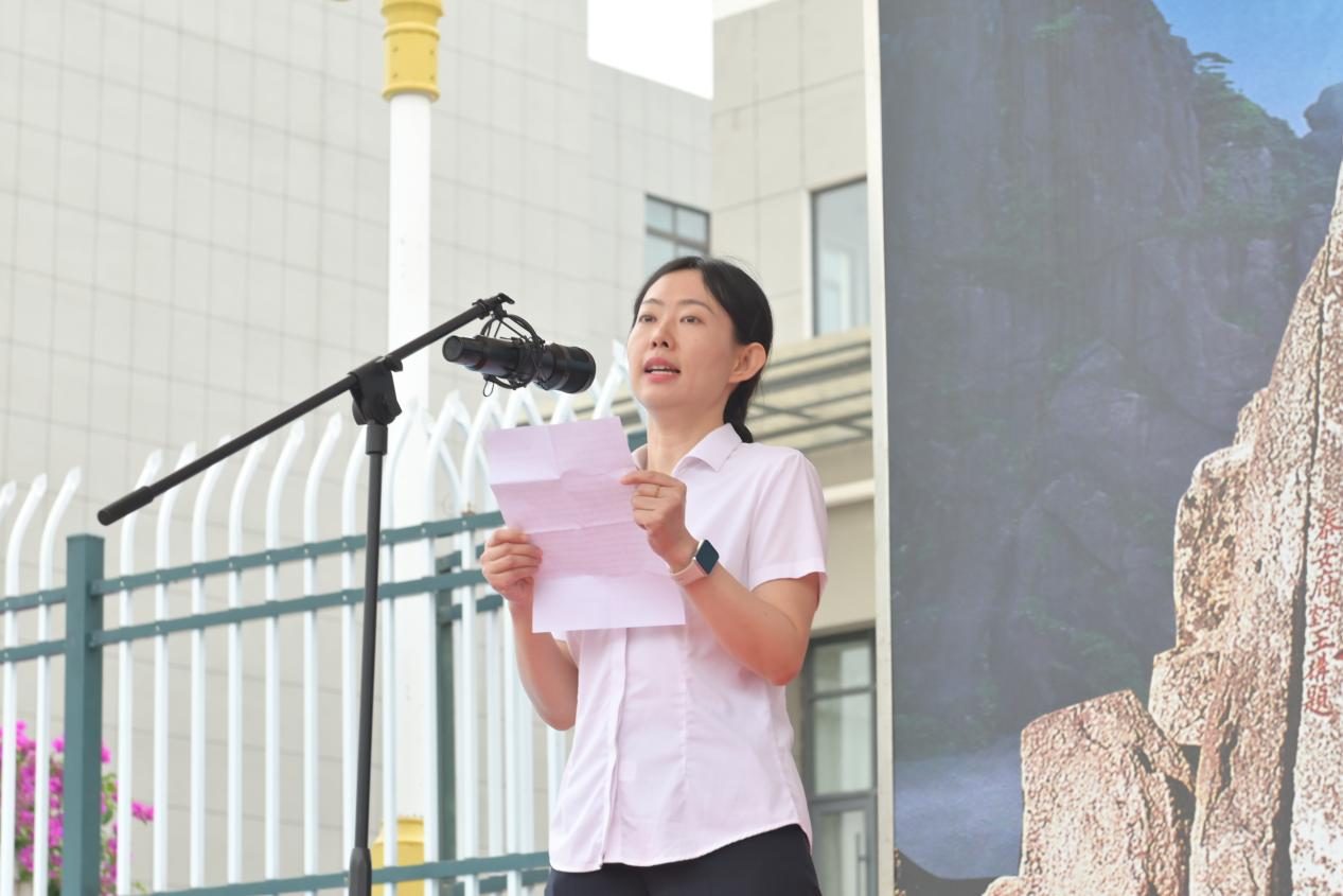 教師代表、復讀部楊宏旸老師深情寄語全體同學。楊老師結合9.3閱兵與上合峰會,激勵師生傳承抗戰(zhàn)精神、踐行“上海精神”。她寄語學生:要志存高遠、勤學善思、全面發(fā)展;勉勵教師:要精研教學、用心陪伴、因材施教、協(xié)作爭先。倡議全體師生以昂揚姿態(tài)擔當時代責任,在奮斗中書寫無愧于國家與青春的新篇章。