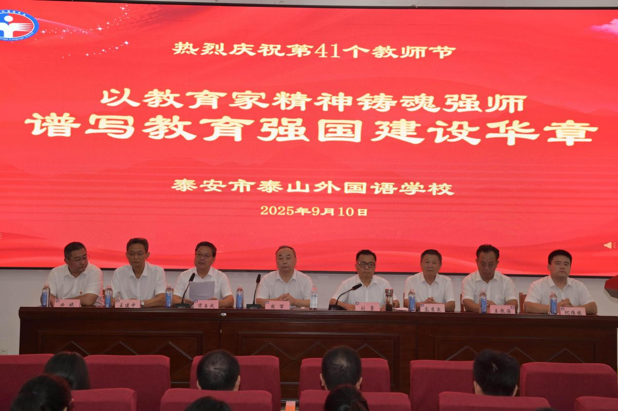 優(yōu)秀教師代表張藝?yán)蠋煱l(fā)言,她說:“教育是一場(chǎng)漫長的修行,唯有熱愛,可抵歲月漫長。讓我們以抗戰(zhàn)精神中百折不撓的堅(jiān)韌、眾志成城的信念,面對(duì)教育路上的每一道難關(guān);以不畏艱難、持續(xù)奮斗的姿態(tài),肩負(fù)起立德樹人的使命,用責(zé)任與堅(jiān)守,共同書寫泰山外國語學(xué)校教育事業(yè)的新篇章!”