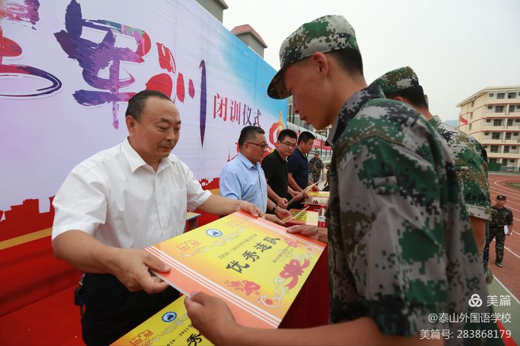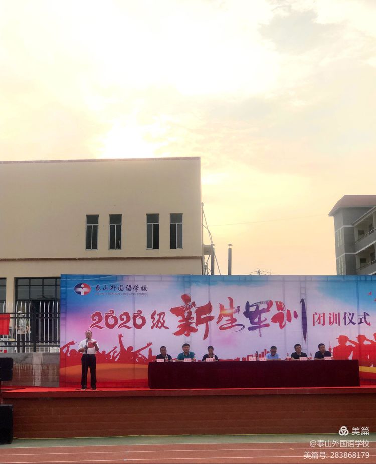 2020年9月13日,泰山外國語學(xué)校2020級高一新生軍訓(xùn)閉訓(xùn)儀式在新校區(qū)隆重舉行!泰山中學(xué)校長周軍、黨委書記劉勇,外國語學(xué)校副校長陳海燕、劉啟東、朱玉虎,外國語學(xué)校辦公室主任、年級主任朱立漢、學(xué)工處副主任王濤參加閉營儀式,并在主席臺就坐,參觀全體高一新生的軍訓(xùn)成果,王濤主任主持閉營儀式。