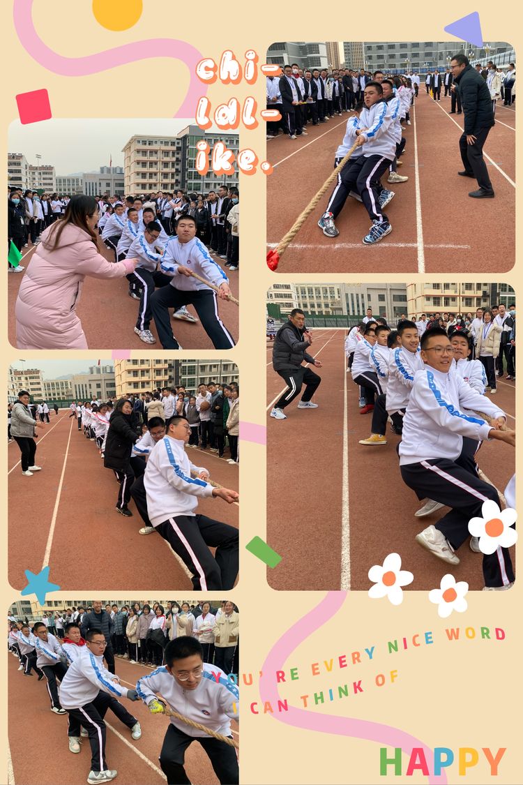同學(xué)們,伸直了胳膊,蹬直了雙腿,緊抿著嘴巴,眼神充滿了堅(jiān)定;老師們,加油鼓勁,指揮若定,“重心下移”、“繩子拉直”、“隊(duì)伍站齊”。
